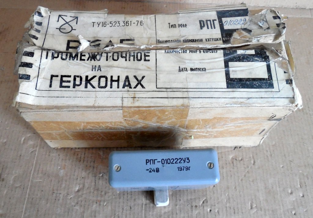 Реле проміжне на герконах типу РПГ-010222У3, 24В. Нові, в упаковці. Кожне реле містить 2 окремі катушки і 2 геркона. Більш детально про будову, роботу та характеристиках реле РПГ на герконах можно прочитати в інтернеті.