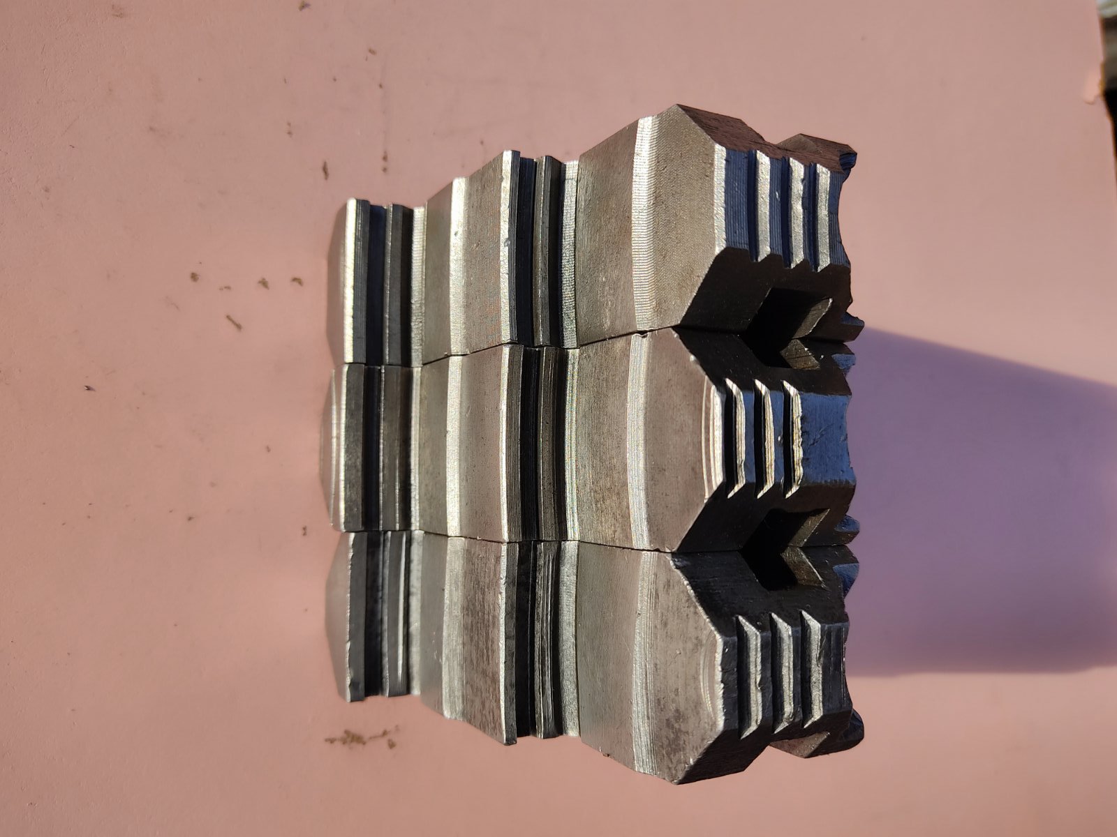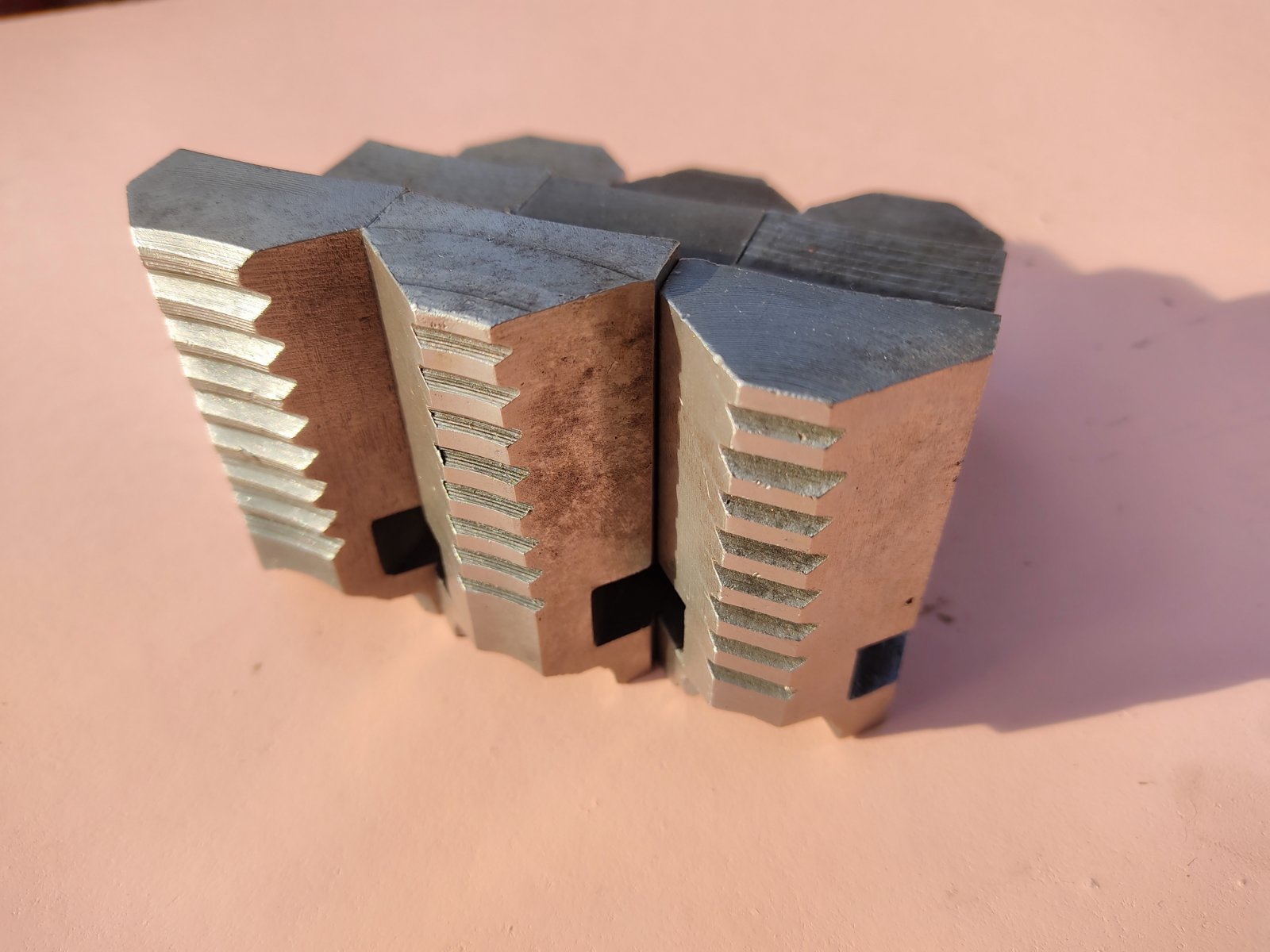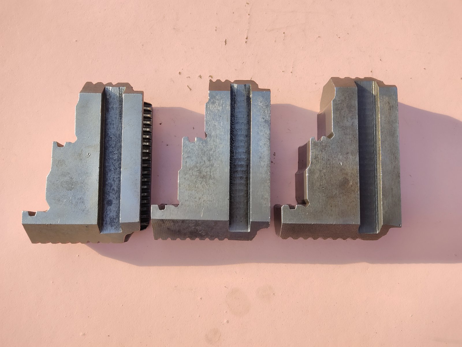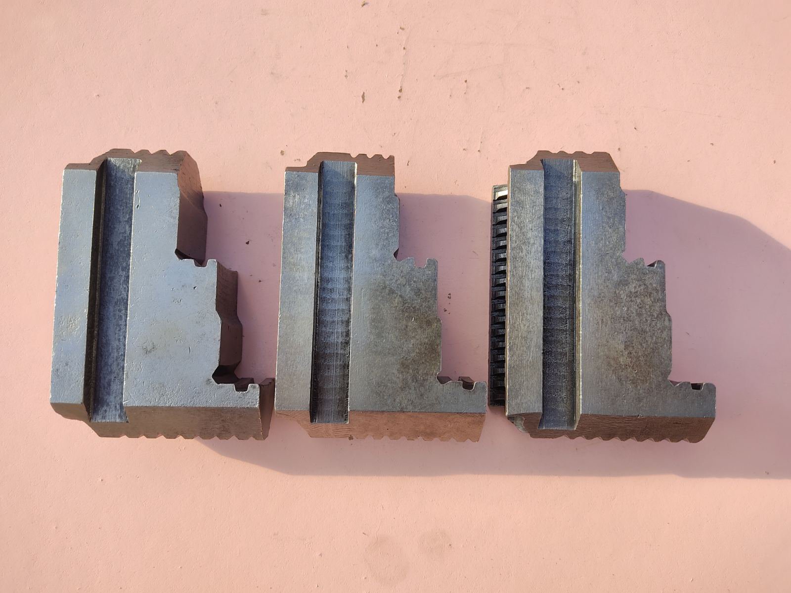 Кулачки універсальні до 250-го 4-х кулачкового патрона. Ширина 36 мм, паз 13 мм, полиця 12 мм, крок гвинта 5 мм. Кулачки з різних комплектів, стан на фото.