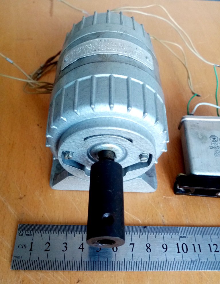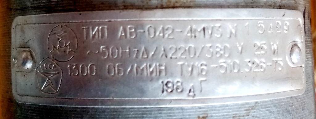 Електродвигун АВ-042-4МУ3. Це трьохфазний двигун але його можна ввімкнути в звичайну мережу на 220В з використанням конденсаторів. Конденсатори загальною ємністю на 2,5 мкф в комплекті додаються. Напрям обертання при підключенні можна змінювати на реверсне. Підключення зроблено трикутником і двигун випробувано. Працює тихо і без вібрацій.. Він з демонтажу практично нового обладнання. Потужність 25 Вт, 1300 об/хв. На валу, як видно, є втулка, яку при необхідності можна легко зняти. Виконання - з лапками. Зі знаком якості.Цей двигун можна використати, наприклад, для виготовлення ручної дрелі, невеликого точила чи сверлильного станка та ін. Більше інформації про характеристики можна подивитись, наприклад, за посиланням