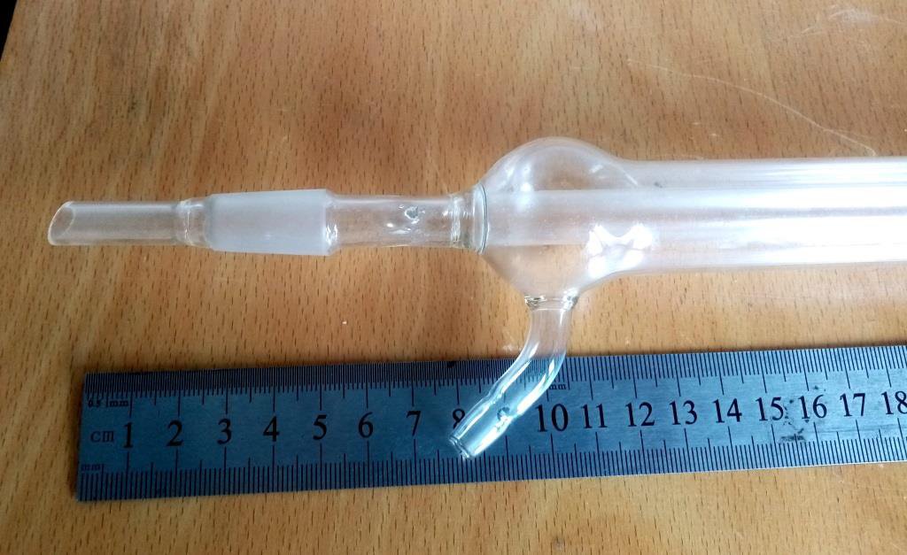 Холодильник Лібіха (прямий) з шліфами. Ще СРСР, логотип виробника і розміри видні на фото.