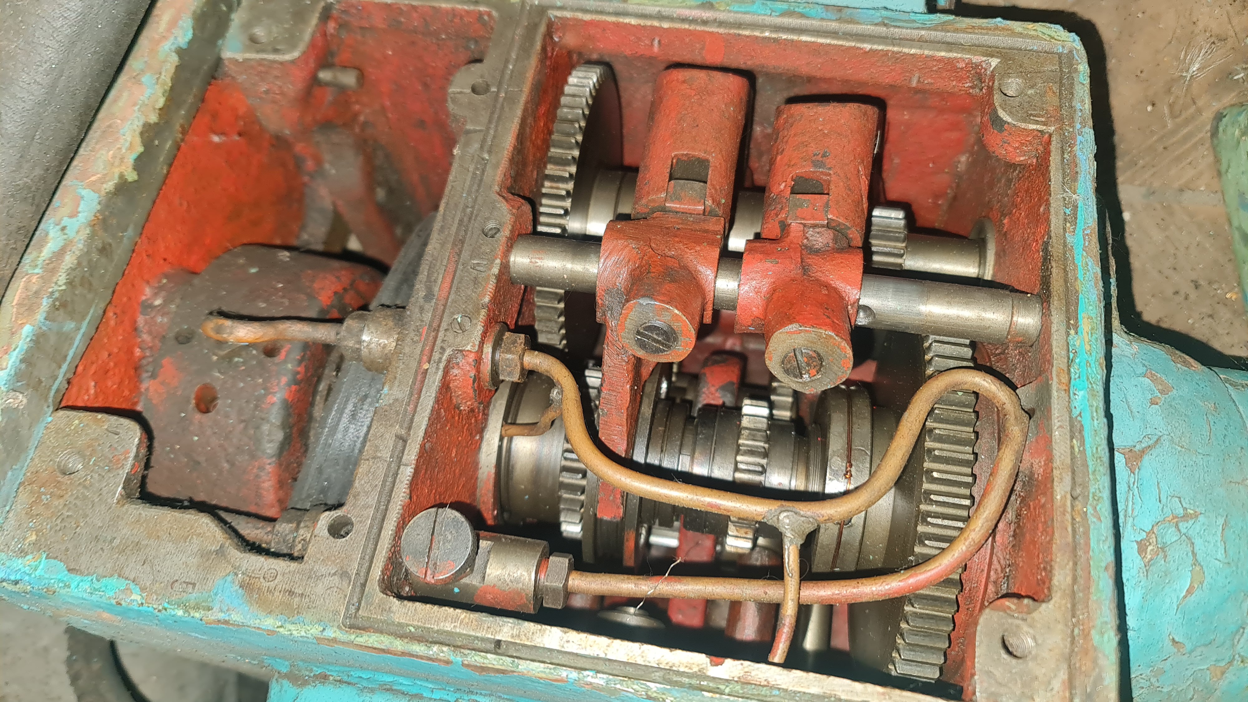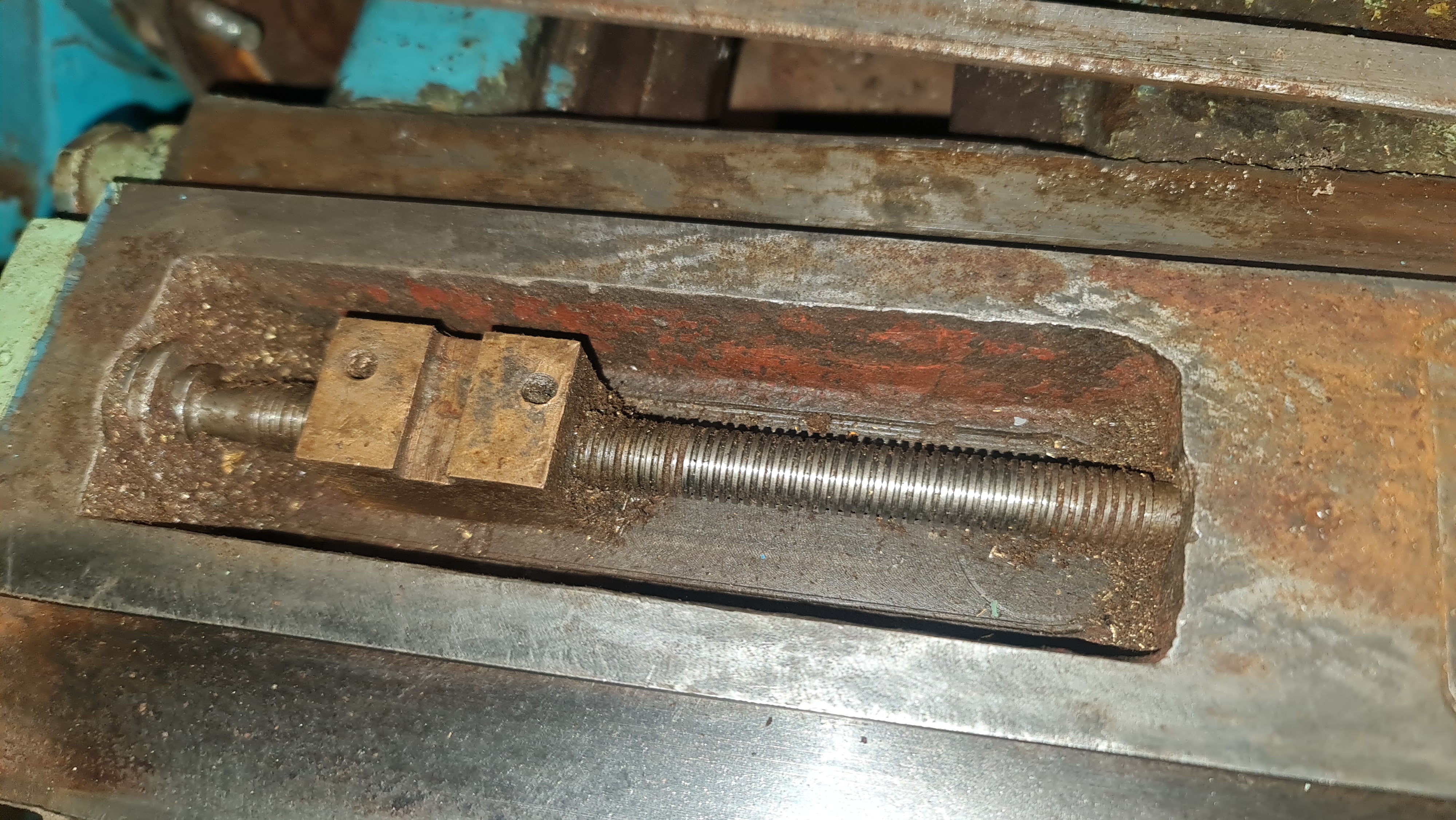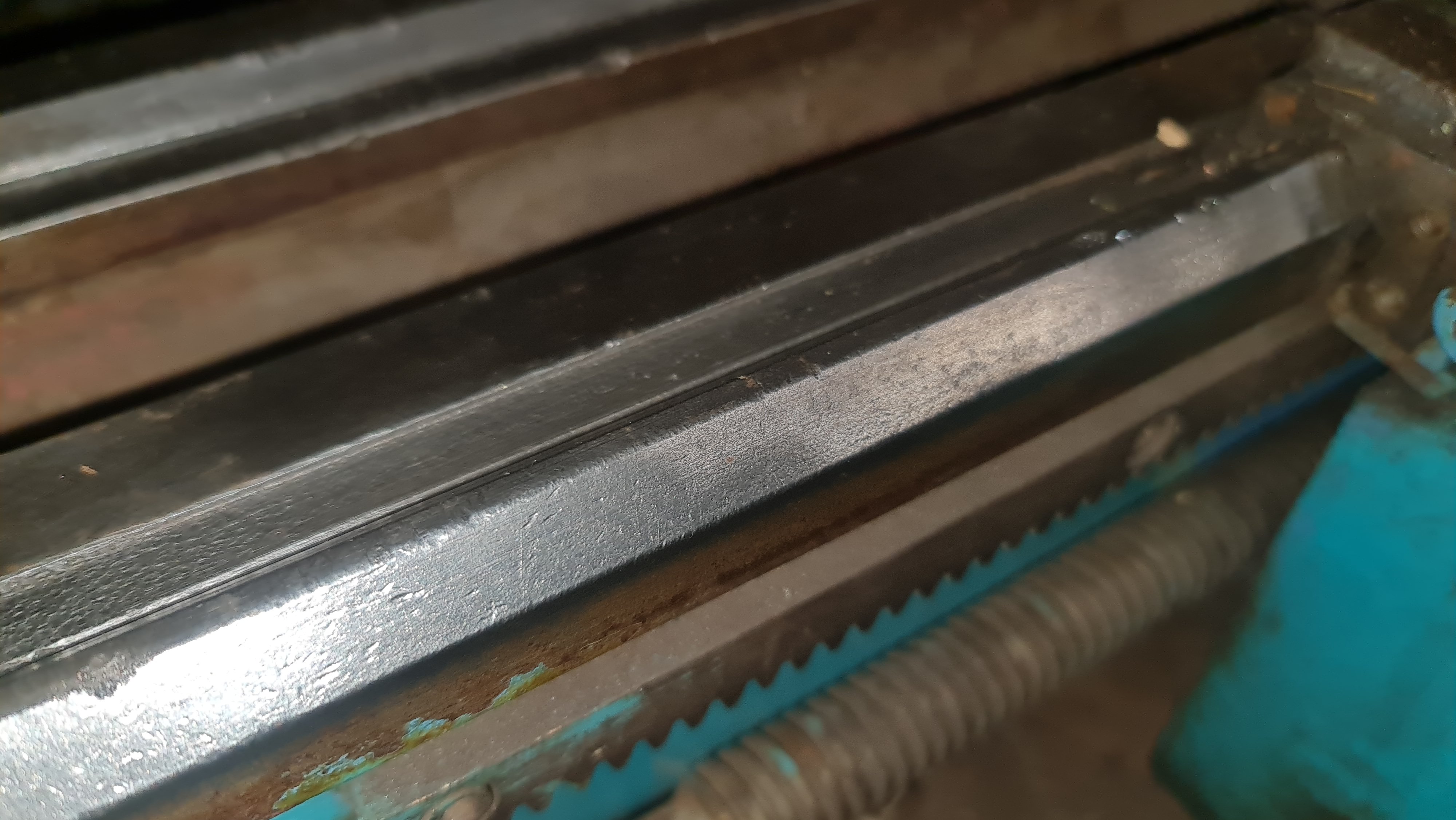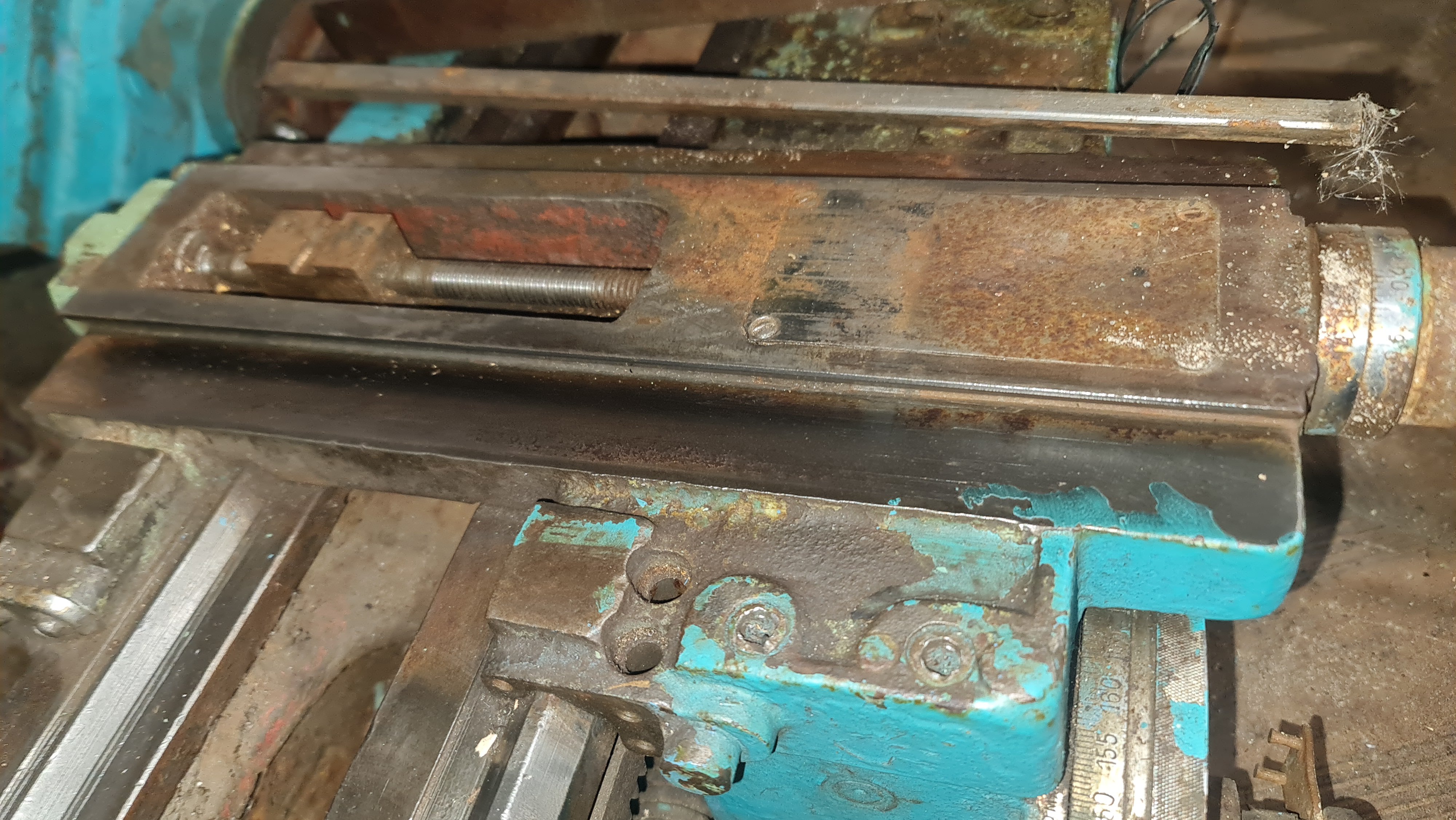 Не дивлячись на страшненький вигляд станина практично в ідеалі! Зносу немає! Є лише коцки, які окрім естетики ні на що не впливають. Поперечка також в чудовому стані, гвинтова пара теж без зносу, люфта не має. Передня бабка в чудовому стані, всі шестерні цілі.