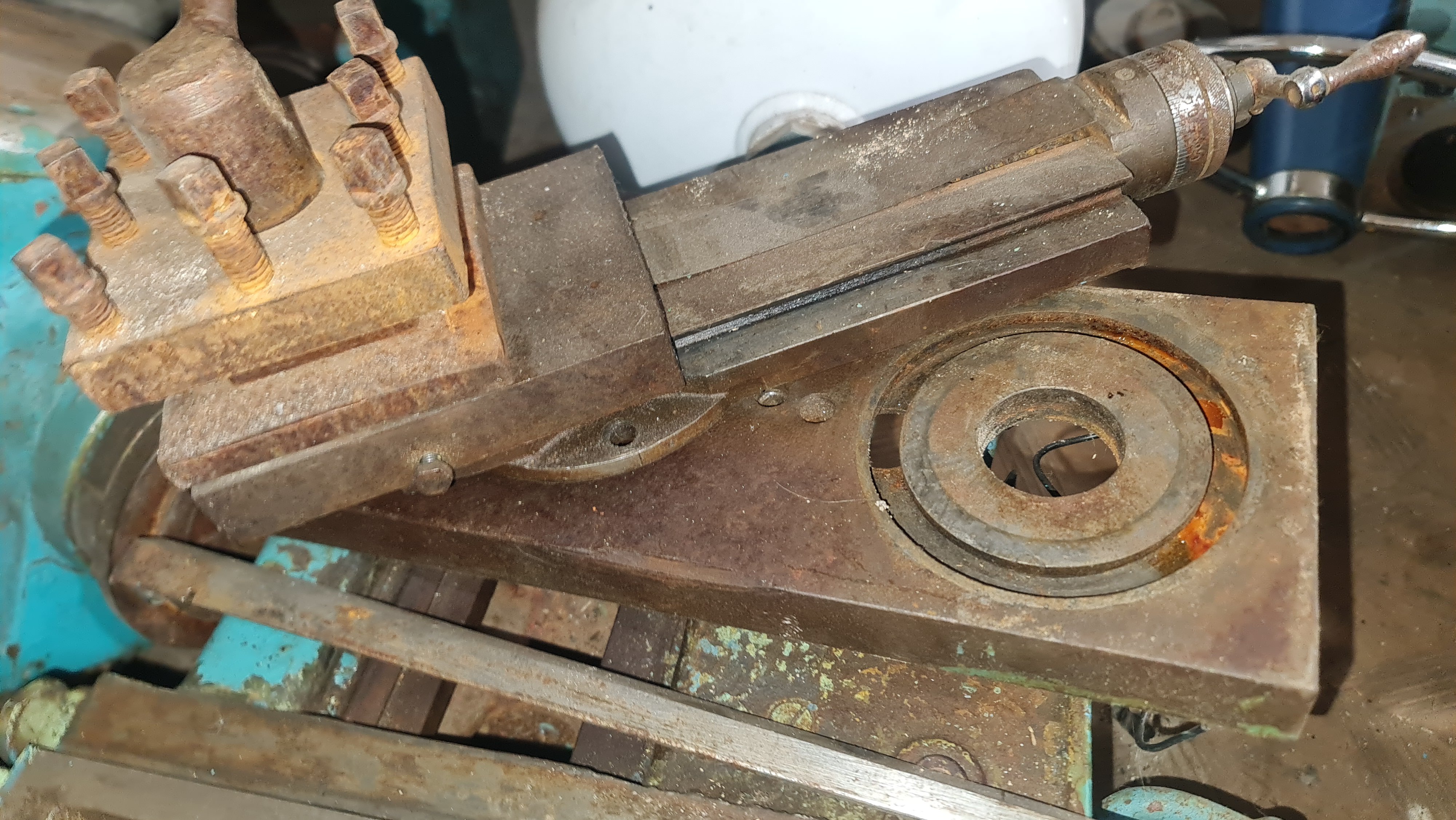 Станок практично повністю комплектний. Відсутні електромотори, варіатор та патрон. Решта все є (в тому числі тумба!). Станина, передня бабка, суппорт з фартухом, мала поздовжня, різцетримач, задня бабка !!! (вона була відсутня, я її купив окремо), маслостанція.