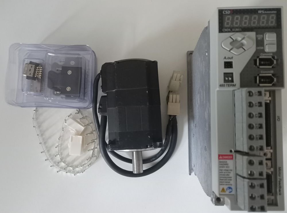 Серводрайвер CSD5-01BX1 + мотор DANZ-02BC2N2. Комплекты проверены, все разьемы в комплекте, есть свой софт для настройки, есть автотюнинг с определением момента инерции и резонансных частот. Богатые по функционалу и простые в настройке.