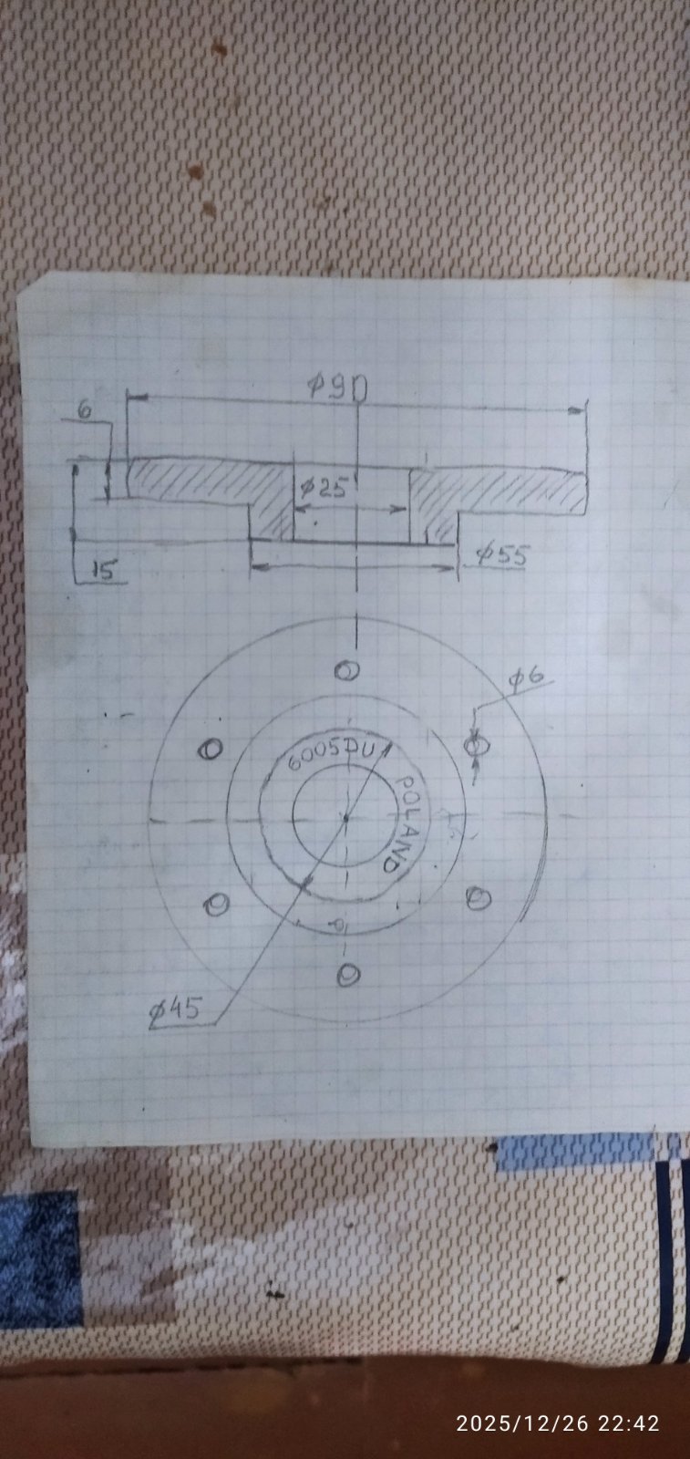 Фланець з підшипником 6005DU - Польша (фланець - пластик)
