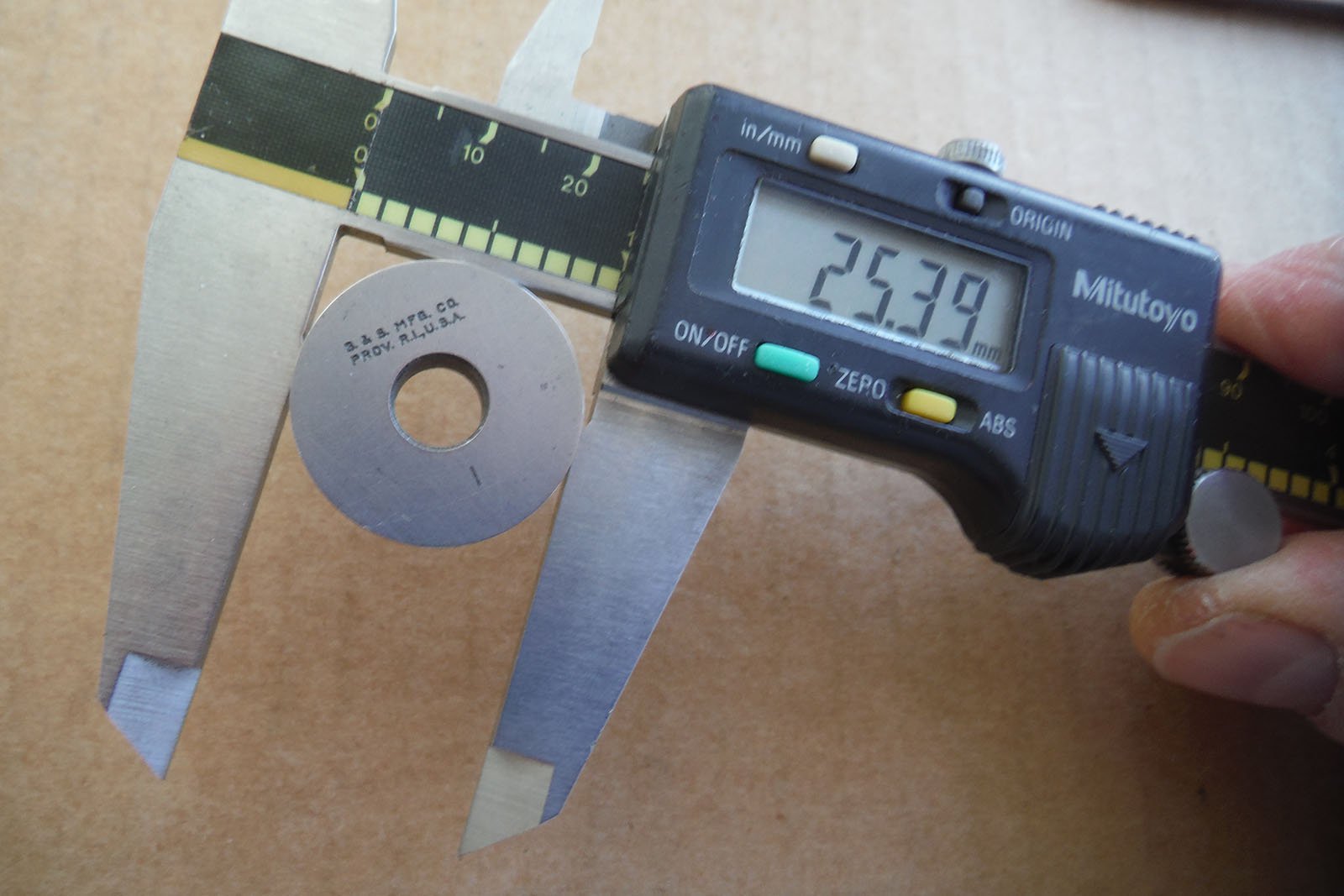 Результати замірів на фото. Для вимірів використовувалися дюймовий калібр (25,40 мм), кільце з внутрішнім діаметром 22,000 мм, КМД 60 мм та 90 мм.