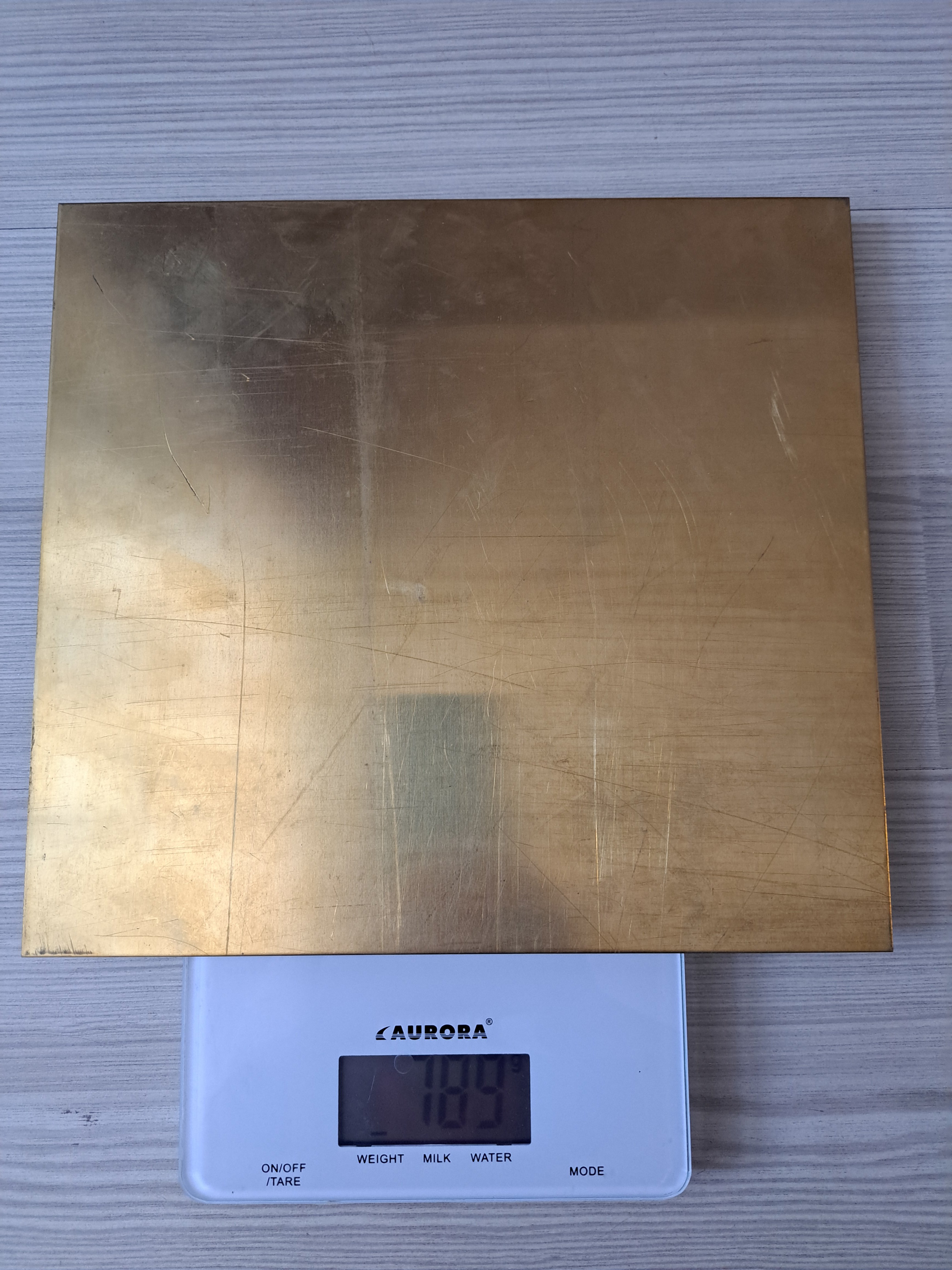 Латунь пластина товщиною 1.5мм. Розмір 238×258 мм. Вага 0.78 кг.