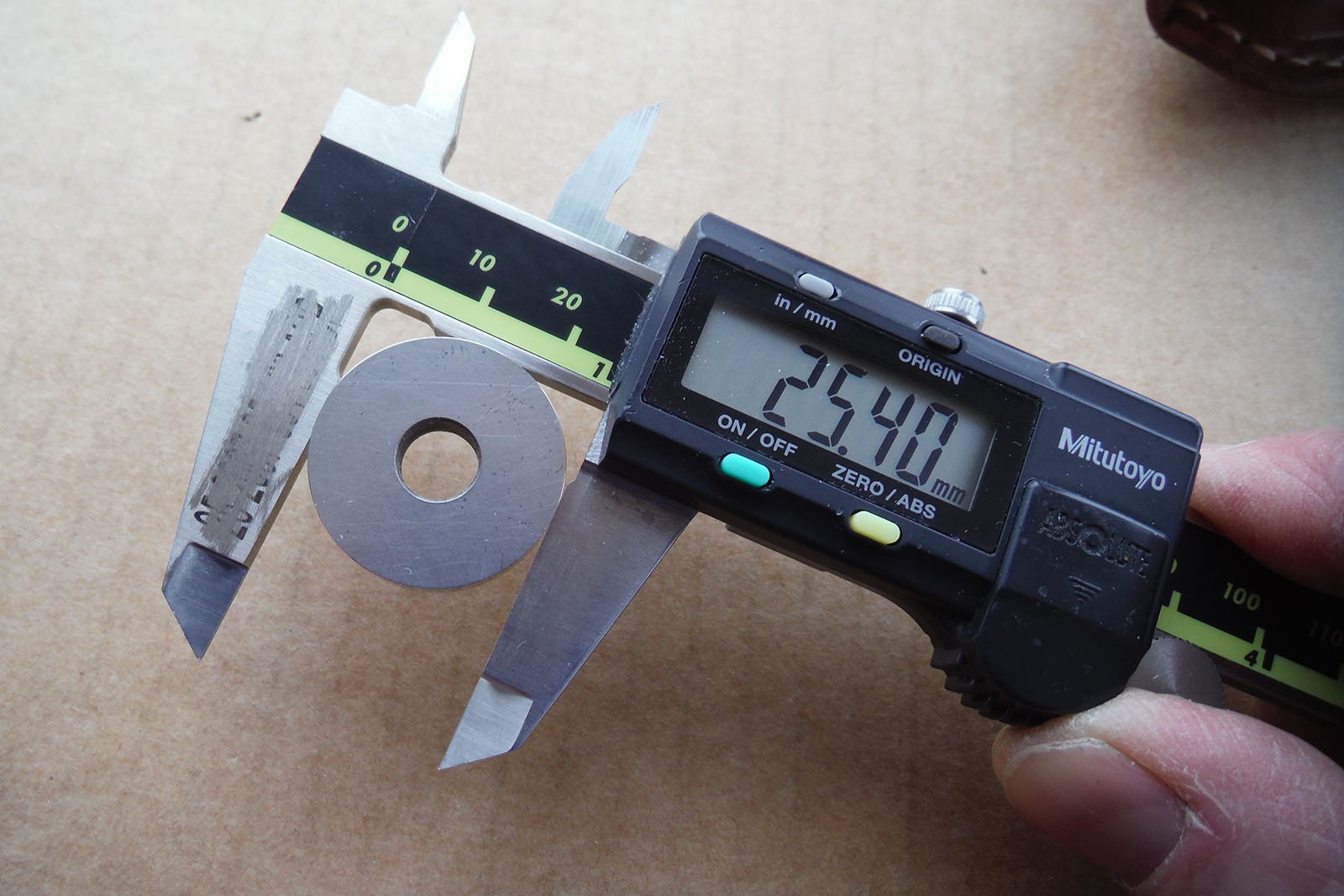 Результати замірів на фото. Для вимірів використовувалися дюймовий калібр (25,40 мм), кільце з внутрішнім діаметром 22,000 мм, КМД 60 та 90 мм.