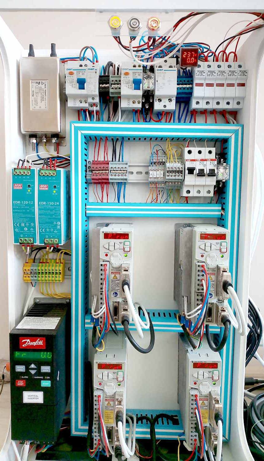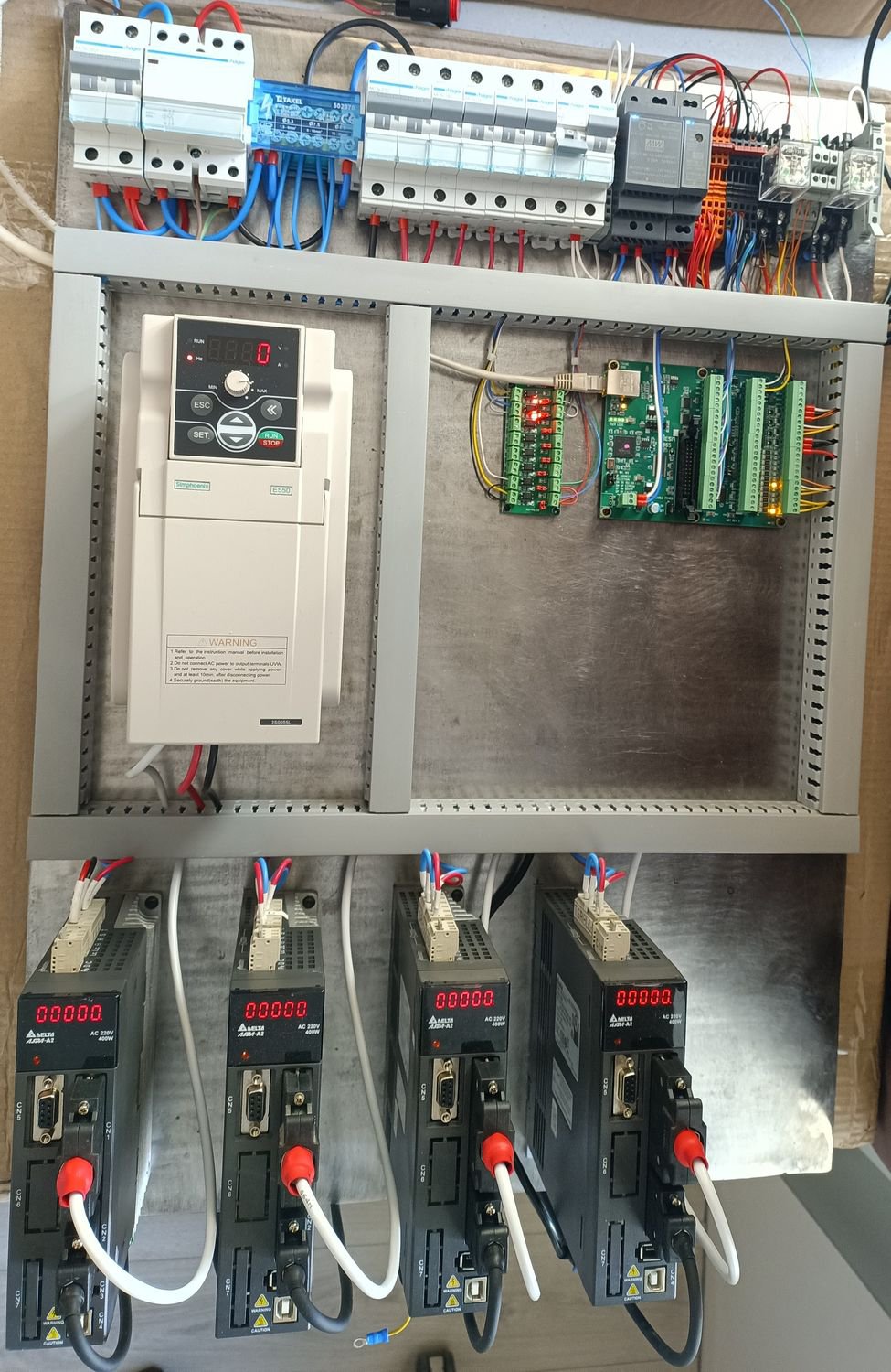 При заказе всех вышеприведенных пунктов вы получаете готовый собранный щит с настроенной системой. Единственное что нужно будет сделать - установить сервомоторы на станок и выполнить простую процедуру автотюнинга (необходимо для правильного определения момента инерции и настройке ПИД сервопривода).