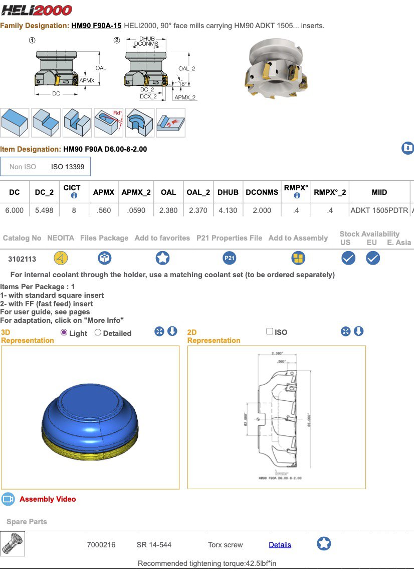 Вживана торцева фреза Iscar. Тип HELI2000, Модель HM90 F90A D6.00-8-2.00.
