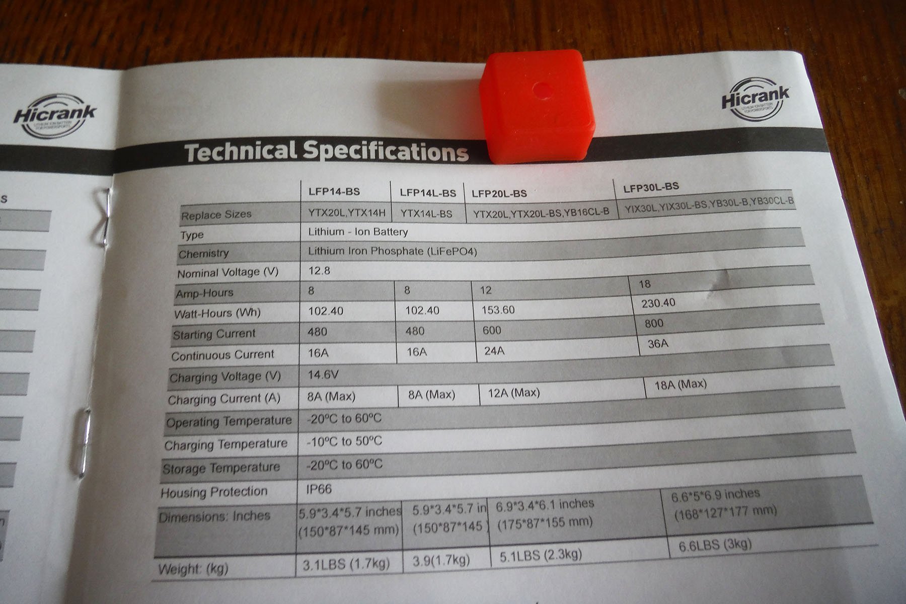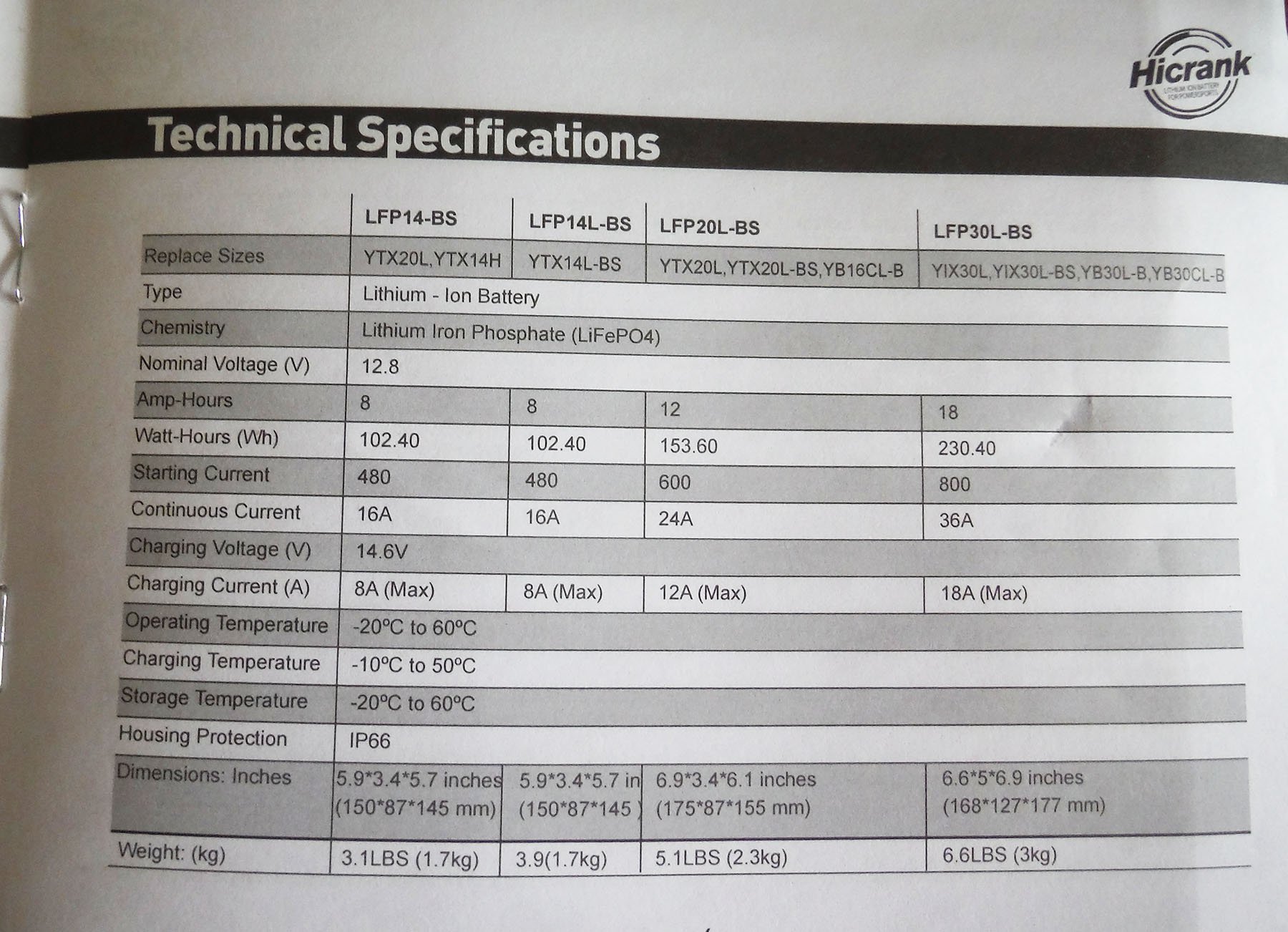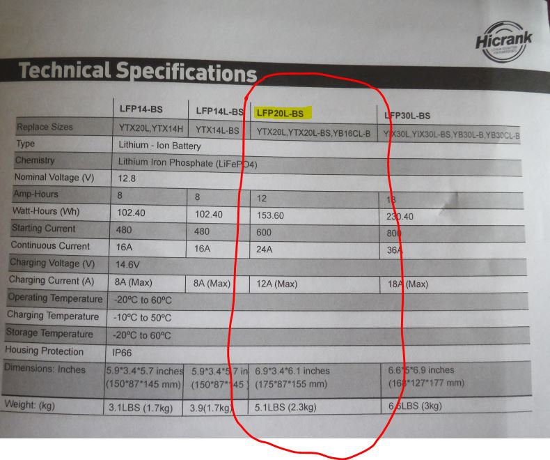 Пусковий літійзалізофосфатний (LiFePo4) мотоакумулятор Hicrank LFP20L-BS.