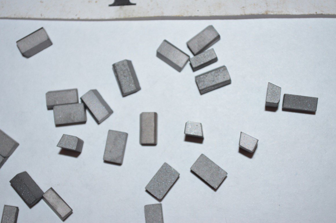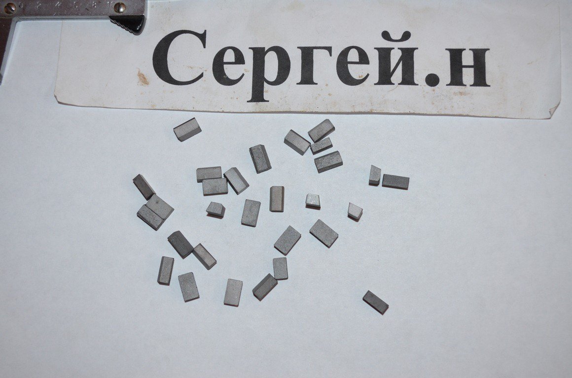 довжина 10-10,5 мм, ширина нижньої основи 6-6,5 мм, верхньої 5 мм, товщина 4 мм