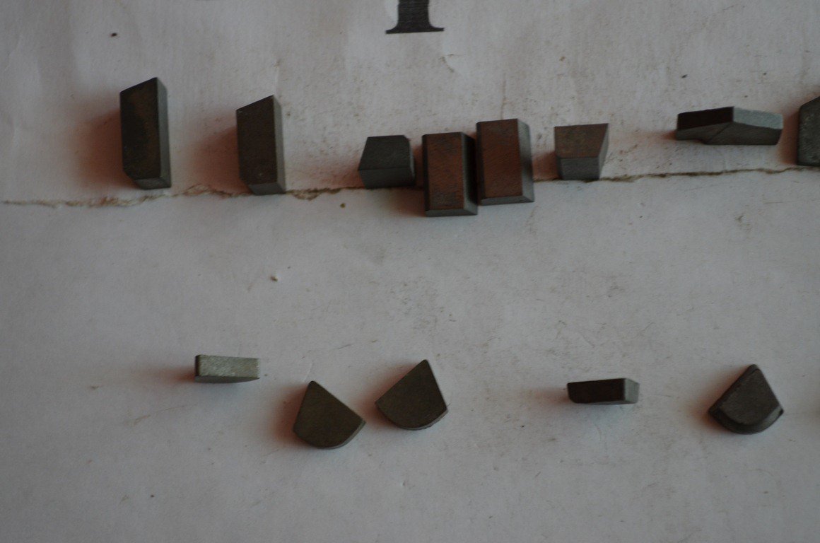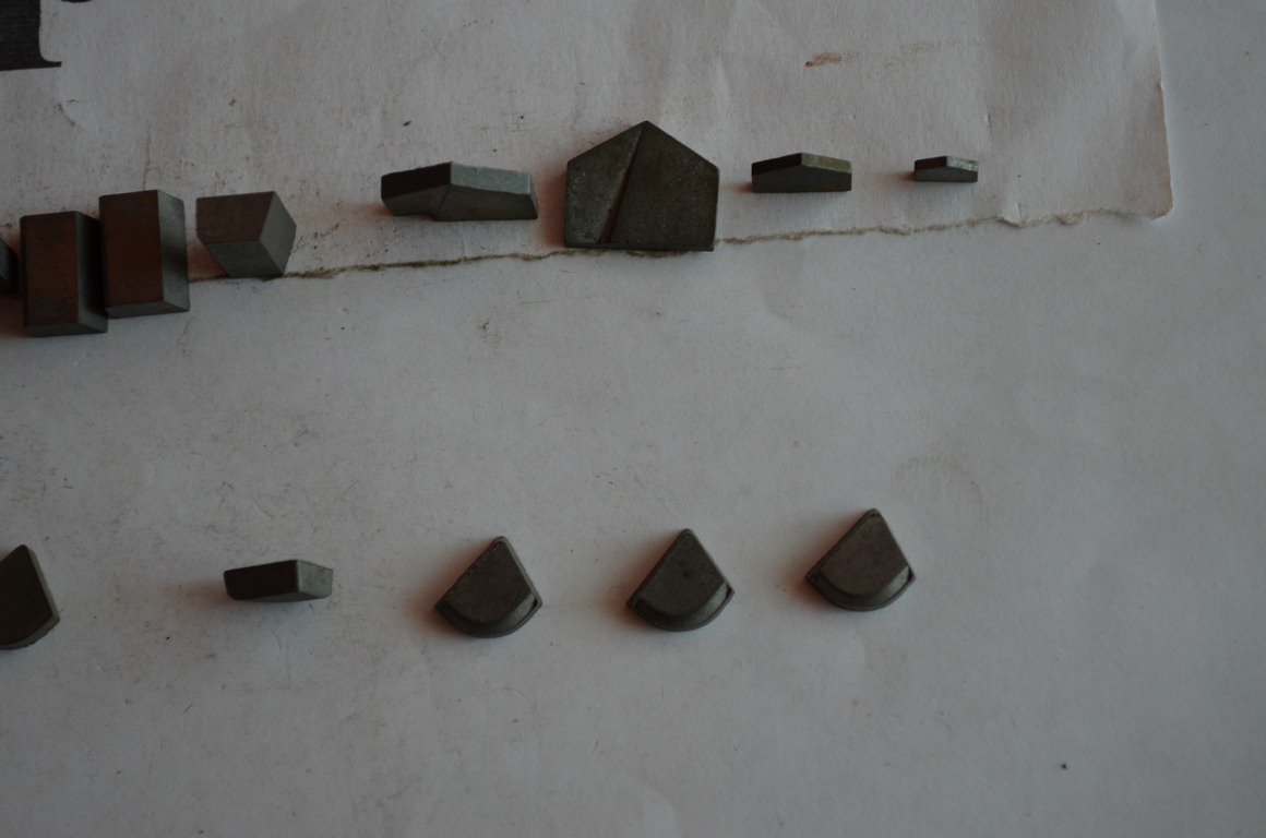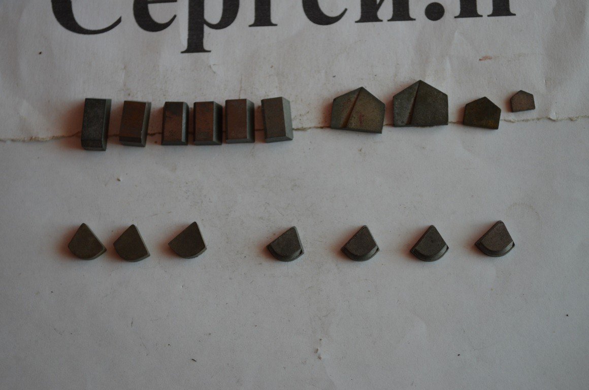 3) довжина 12мм, ширина нижньої основи 8мм, верхньої 7мм, товщина 5мм, 4шт