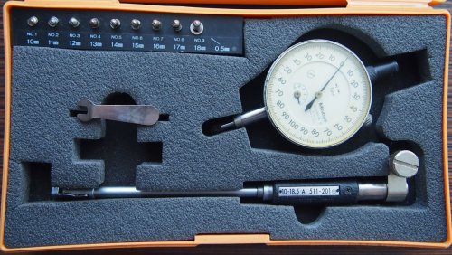 Нутромір індикаторний Mitutoyo діапазон 10-18,5. Повна комплектація - все що на фото, вставки всі. Індикатор мікронний, і трохи пожовтівше скельце, але працює добре, стрілка завжди повертається в початкове положення, рух легкий на всьому проміжку. Коробка якась ніби роздута, але закривається.5 000,00гр