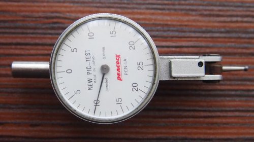 індикатор важільного типу Peacock New Pic-Test PCN-1AE, діапазон 0,01-0,65мм, ціна поділки 0,01мм. Стан добрий, працює чудово, стрілка чітко та завжди повертається в початкове положення, рух легкий в обидві сторони. Загальний хід стрілки 0,65мм, хід стрілки завжди по годинниковій стрілці, не залежно з якого боку прикладене зусилля на ніжку. Довжина ніжки 12мм, діаметр циферблату 35мм, чудова інформативність, поділки циферблату з великими проміжками, ластохвости на 3-х площинах. Можливо ніжка не рідна. На гістерезис не перевіряв, тому прохання бронювати якщо розумієте всі ризики та відповідальність.1 500,00гр