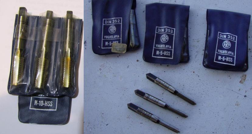 #111899 Опубліковано: 9 травня, 2018 (змінено) якщо вже мова зайшла про метчики то з свого досвіду можу порекомендувати от такі набори виробництва Югославії часів СРСР нарізав такими різьби в титані ( і у більш в"язкому і в крихкому ) більше 20 різьб на глибину 10 мм вистояли . Китайський один скрутився у вигляді свердла другий "полисів" на першому ж отворі , радянські з тих що я знайшов на п"ятомі отворі уже не бажали різати . ПС фото з інтернету Змінено 9 травня, 2018 користувачем robo-new 0 Поділитися повідомленням Посилання на повідомлення Поділитися на інших сайтах